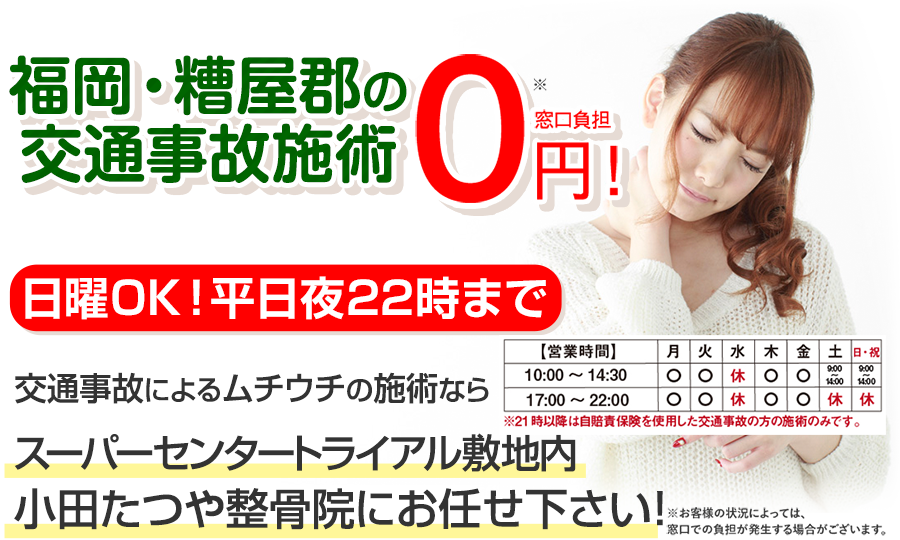 小田たつや整骨院は福岡県糟屋郡の交通事故施術に定評のある整骨院です。