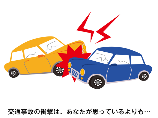 事故にあった直後に、それほど痛みが出ていなかったとしても、交通事故での衝撃を、あなどってはいけません。