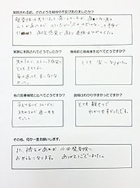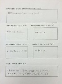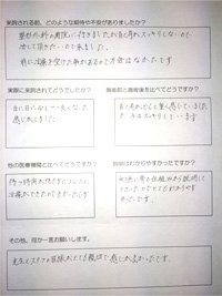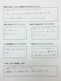 本当にお世話になりました。身体も気持ちも楽になりました。今後も母と祖母がお世話になります。本当にありがとうございました。