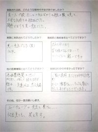 施術だけでなく、保険についても教えていただき、親切、丁寧なご対応をありがとうございました。お世話になりました。