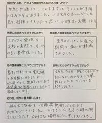 仕事上なかなか通うことができませんでしたが予約の時間を考えてくださり、できるかぎりの通うことができました。ありがとうございました。